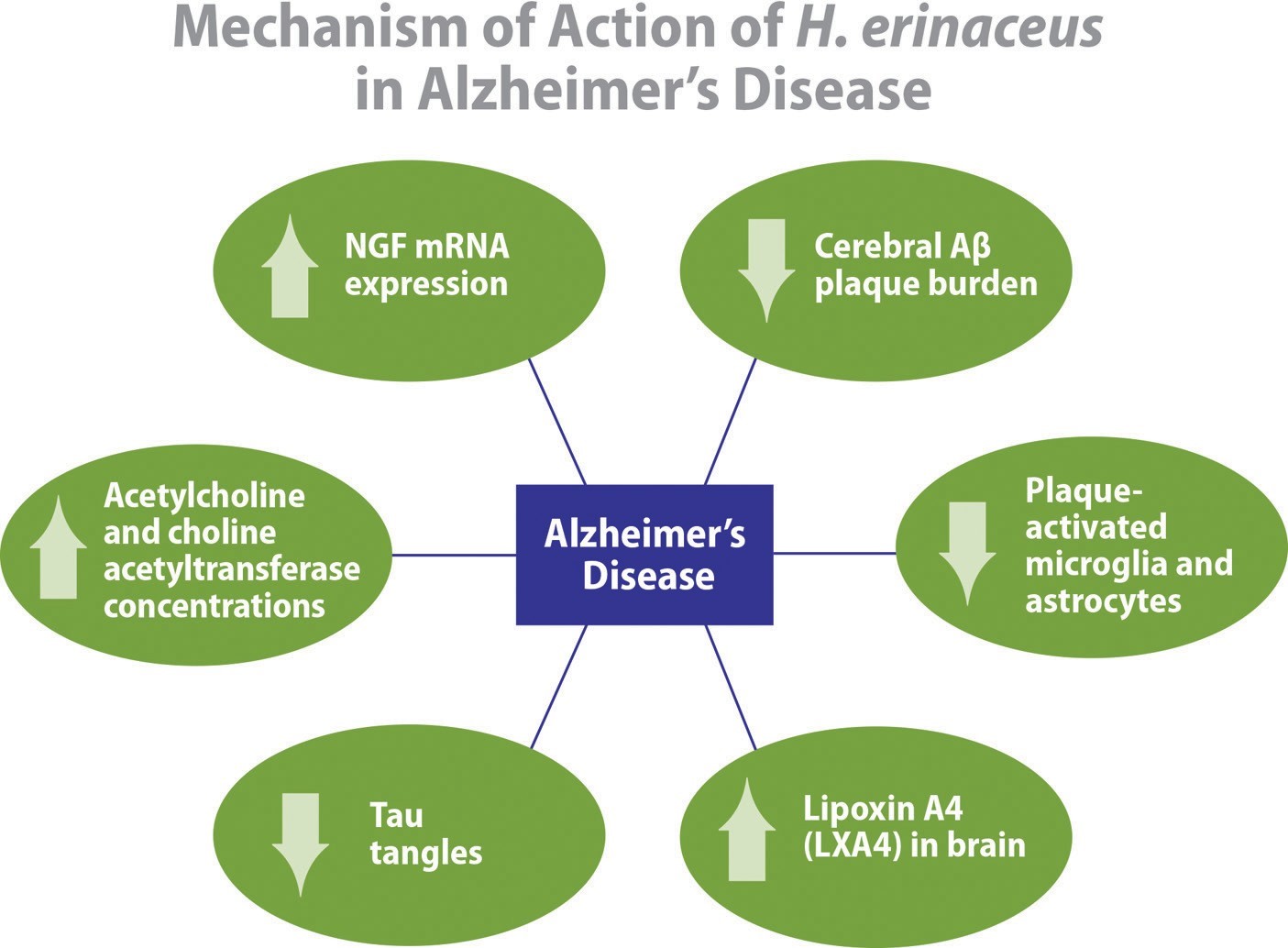 Figure 1: Mechanism of action of Hericium erinaceus in Alzheimer’s disease.